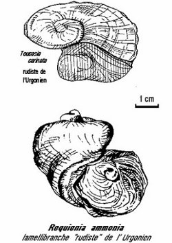 Les deux rudistes de l'époque, le groupe s'éteindra à la fin du secondaire comme les ammonites et