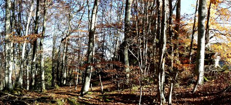 Une forêt de fayards a tout envahi. Curieux endroit, aujourd'hui délaissé et silencieux, où l'on progresse en